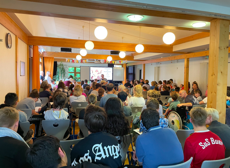 Am letzten Freitag vor den Sommerferien verabschieden sich dann in einer kleinen Feierstunde alle Klassen von den Abschlussschülern in der Aula. Neben verschiedenen Beiträgen aus den Klassen werden auch Reden gehalten! Unser Schulleiter Herr Dr. Mittelberg übergibt zum Abschluss der Feier die Zeugnisse. Im Anschluss treffen sich dann die Lehrkräfte und die Abschlussschüler zu einem kleinen Imbiss.