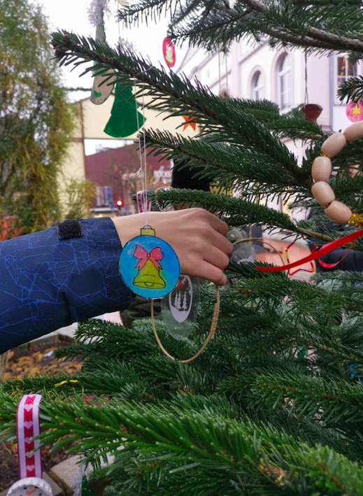 In diesem Jahr haben die Schülerinnen und Schüler der Klasse S5 den Tannenbaum auf dem Weihnachtsmarkt in Melle geschmückt. Viele Klassen haben vorher den Tannenbaumschmuck selbst gebastelt, mit dem der Baum dann verziert werden konnte. Alle Klassen haben sich schöne Ideen einfallen lassen. Auf den Fotos kann man das Ergebnis sehen.